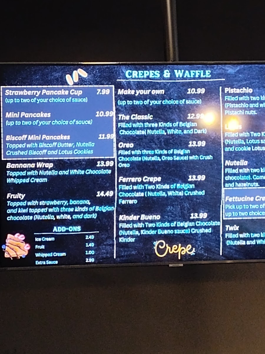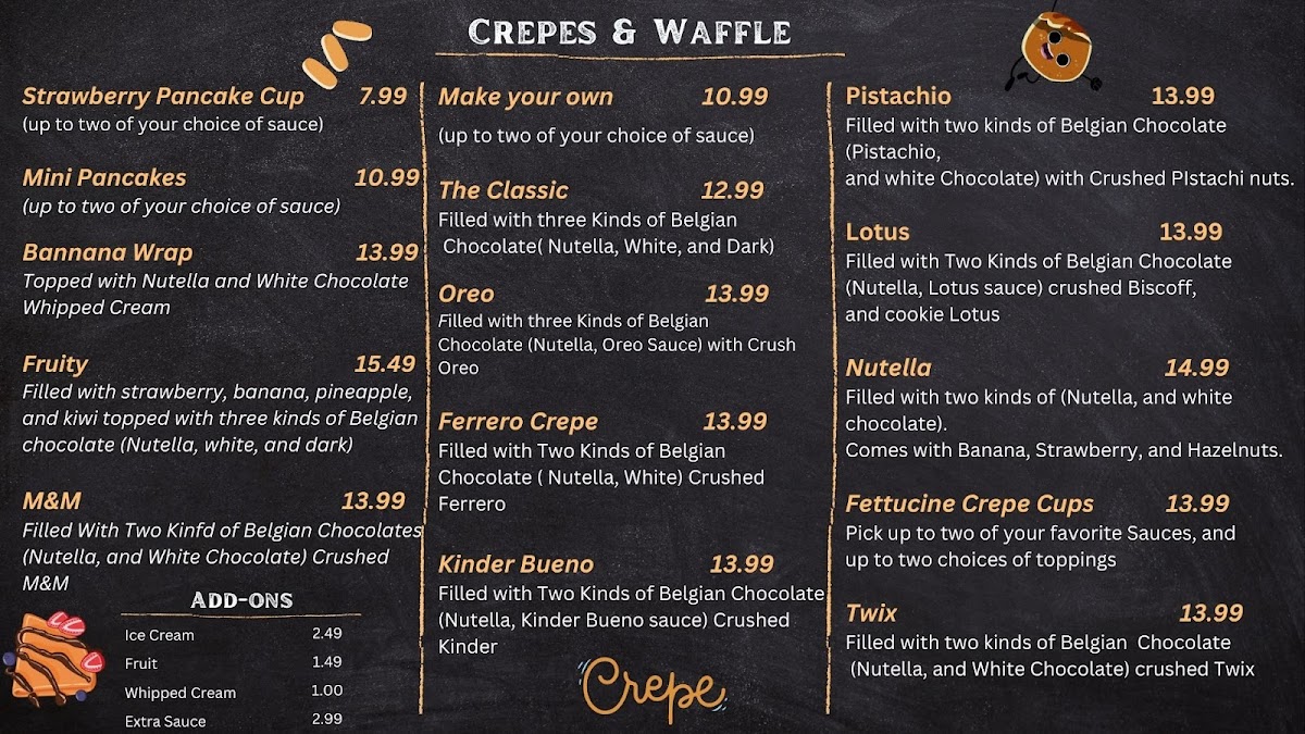For something unique, the Lotus Crepes will captivate your taste buds with the iconic Lotus Biscoff flavor, while the Ferrero Rocher Crepe brings the luxury of hazelnut chocolate wrapped in a warm crepe. The Ferrero Crêpe is another variation of the same rich, nutty delight that has gained fans for its combination of flavors.
